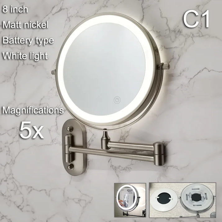 Answer 2: The mirror features convenient USB charging, eliminating the need for batteries. After a simple charge, the mirror can last for several hours of continuous use, making it perfect for both travel and daily use without being tied to a power source.